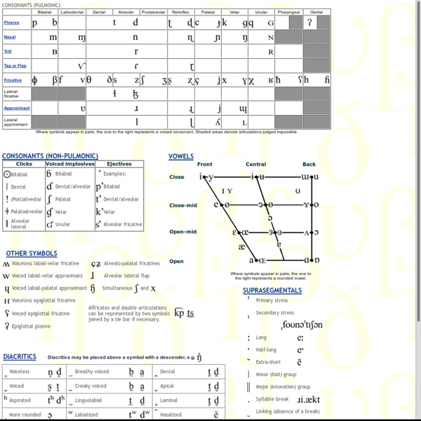 The official international phonetic alphabet, and its organization in a chart, is maintained by the association. 22 web.uvic.ca 2 ling 2 resources 2 ipa 2 charts 2 ipalab 2 ipachart.htm bilabial labiodental dental alveolar postalveolar retroflex palatal velar uvular pharyngeal glottal plosive nasal trill tap or flap. See more of international phonetic alphabet (ipa) on facebook. Wikipedia has tons of comprehensive information, but can be confusing to a beginner. This article is an introduction to the symbols of consonants of the international phonetic alphabet (ipa) as it is used to denote pronunciation of english words (there is a separate article on vowels).